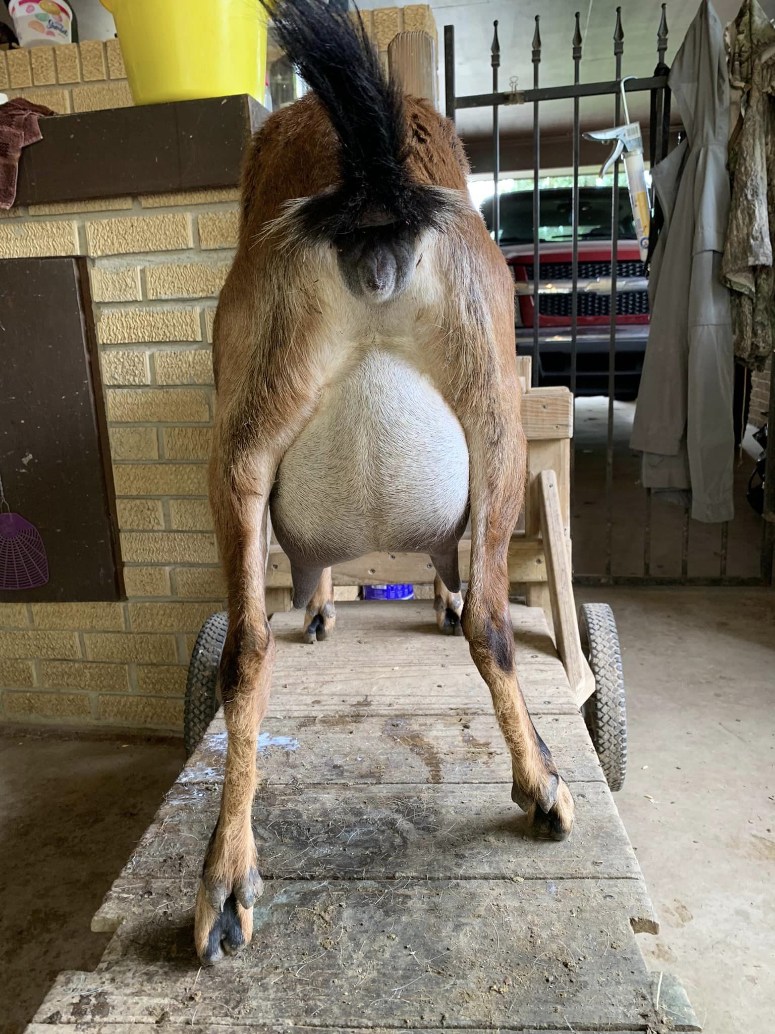 Daisy has an amazing udder! Perfect attachments, super easy milker and raises triplets unassisted!
