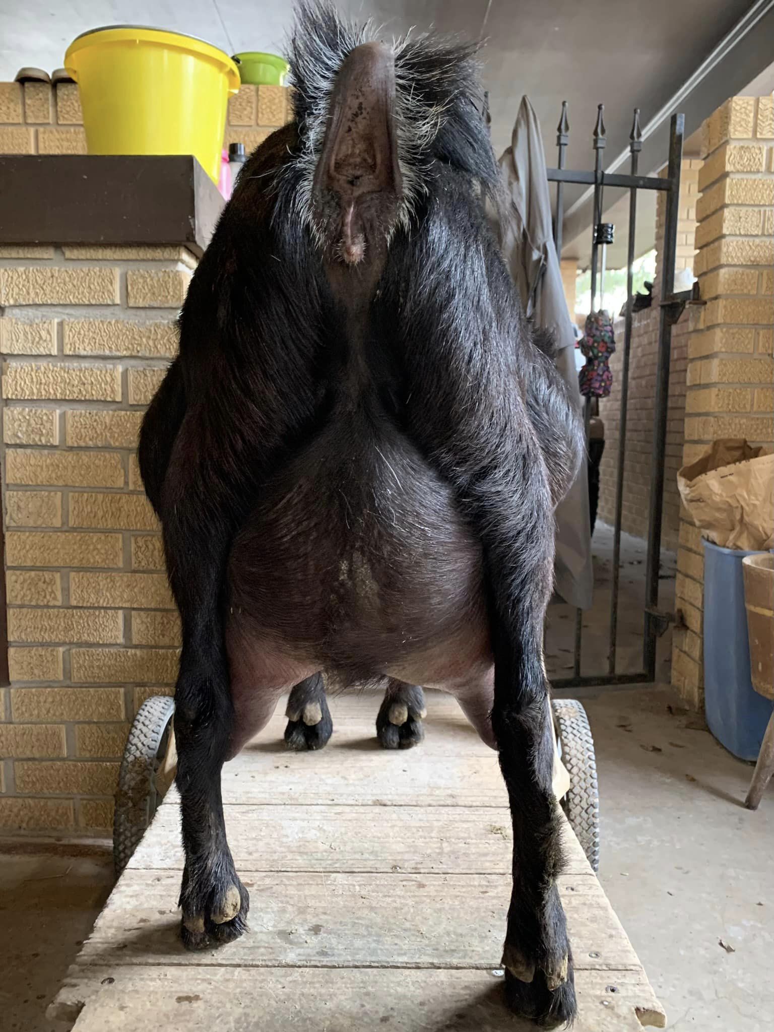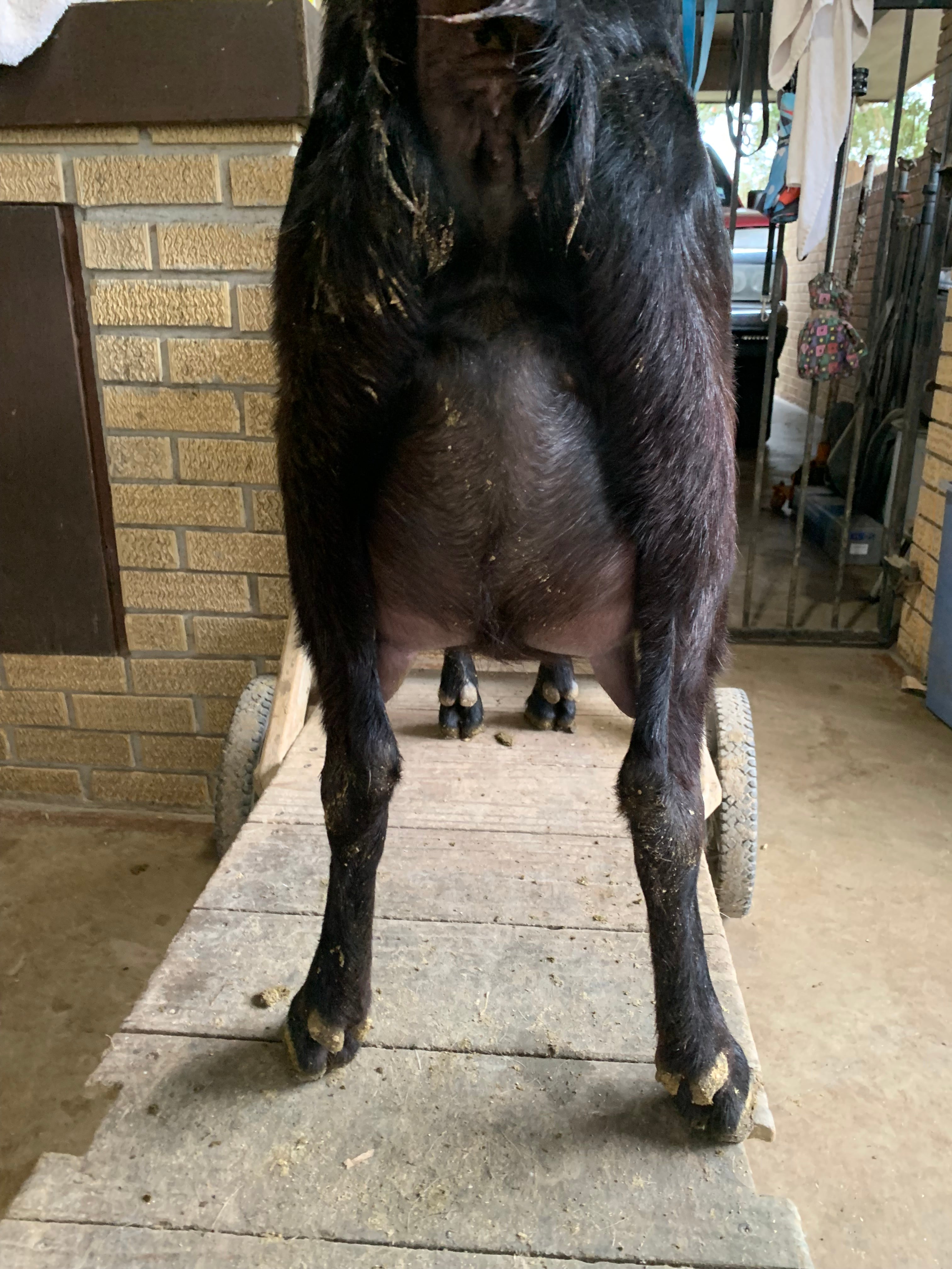Midnight has an amazing udder, beautiful attachments, super easy milker, lifts her leg for you!