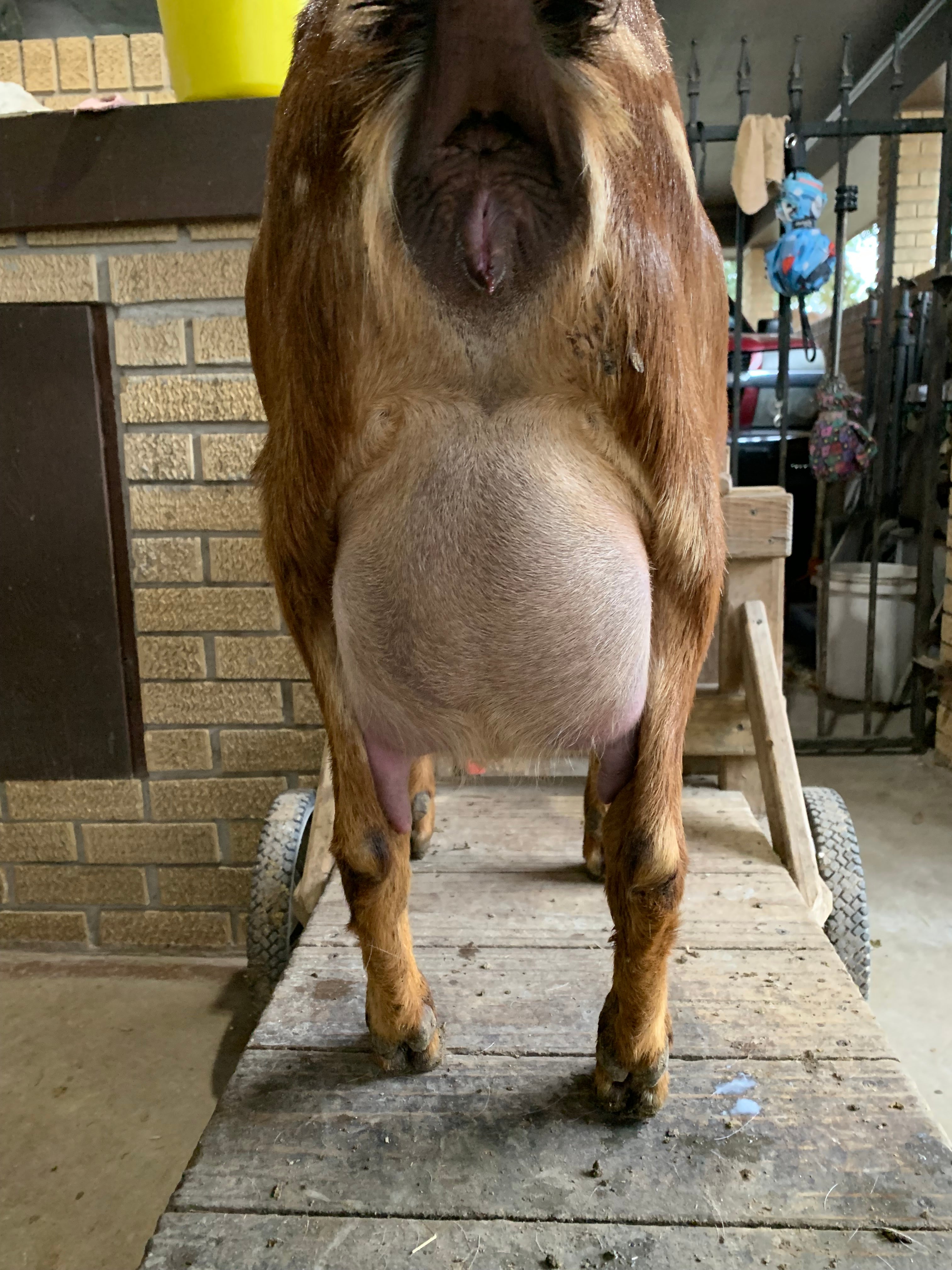 Doe Doe has a beautiful well attached udder, she has nursed triplets every kidding with no issues. She gives right at 3/4 of a gallon each milking while raising her kids!